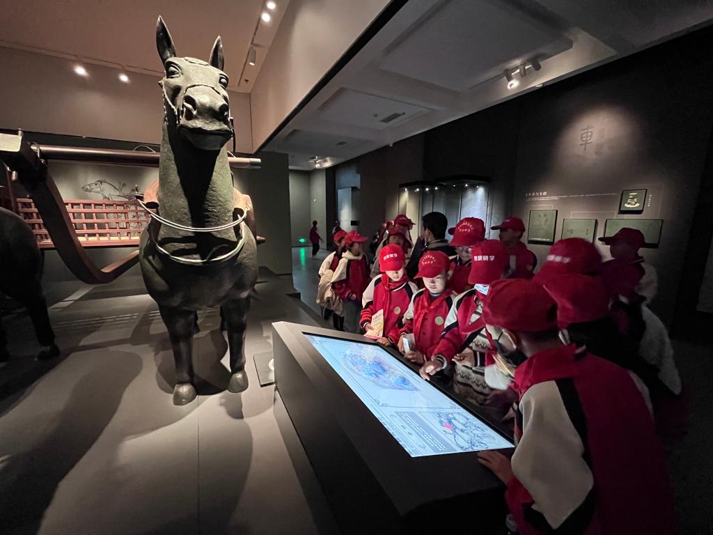 小學(xué)生們在楚王車(chē)馬陣景區參與研學(xué)活動(dòng)。(周舟 攝)