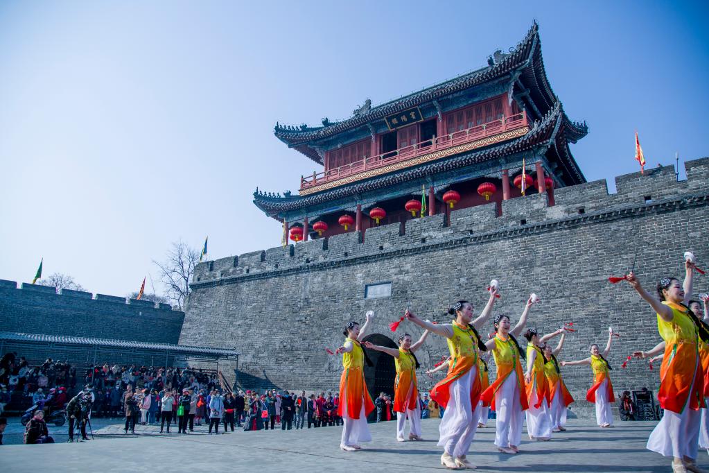 荊州古城歷史文化旅游區賓陽(yáng)樓前,正在舉行文化活動(dòng)。(張夢(mèng)瑤 攝)