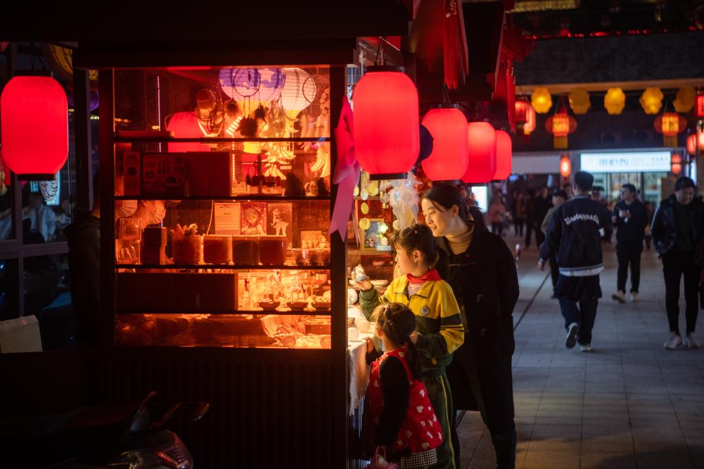 “《三國演義》共120回,其中72回與荊州有關(guān),我們通過(guò)強化三國文化印跡打造出一個(gè)集荊楚美食、江漢平原水鄉特產(chǎn)、文創(chuàng )商品于一體的消費空間,讓這里成為荊州人的‘待客之所’?!焙鼻G旅商業(yè)管理有限公司副總經(jīng)理肖雄說(shuō),自2022年9月開(kāi)街以來(lái),街區人流量屢創(chuàng )新高,今年元宵節單日客流已突破5萬(wàn)人次。