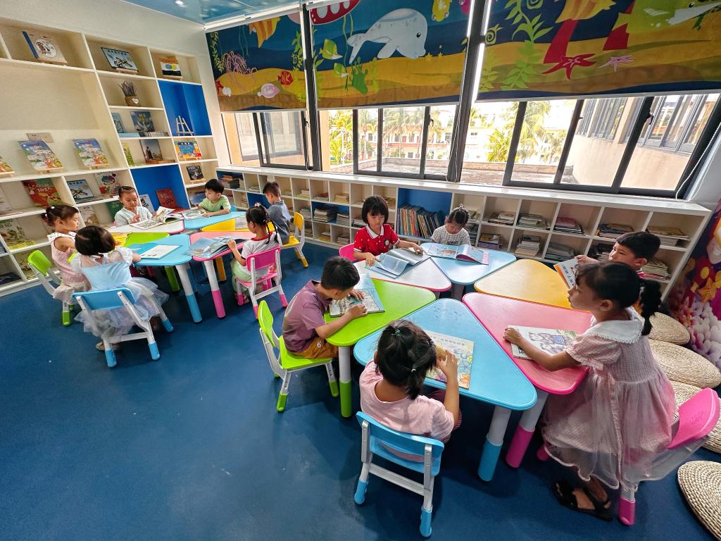 “這樣的場(chǎng)景幾年前完全想象不到?!庇琅d學(xué)校業(yè)務(wù)副校長(cháng)郭興說(shuō),起初學(xué)校書(shū)很少,如今,依托政府資金扶持和社會(huì )各界捐書(shū),學(xué)校有8000多冊圖書(shū),有了電子閱覽屏;24小時(shí)開(kāi)放圖書(shū)館、親子閱讀之家,每個(gè)班還設有圖書(shū)角和閱讀小屋;學(xué)校旁邊的三沙市圖書(shū)館免費向學(xué)生開(kāi)放,孩子們隨時(shí)隨地都有書(shū)可讀。