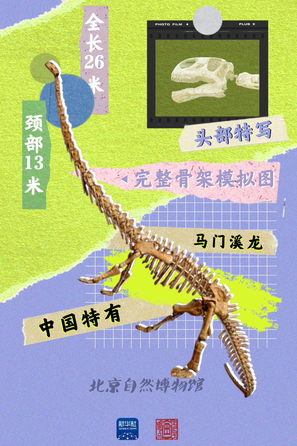 走進(jìn)北京自然博物館古爬行動(dòng)物展廳,有一件標本會(huì )讓人過(guò)目不忘,那便是馬門(mén)溪龍的化石。馬門(mén)溪龍體型雖大,但頭很小,是中國特有的恐龍。