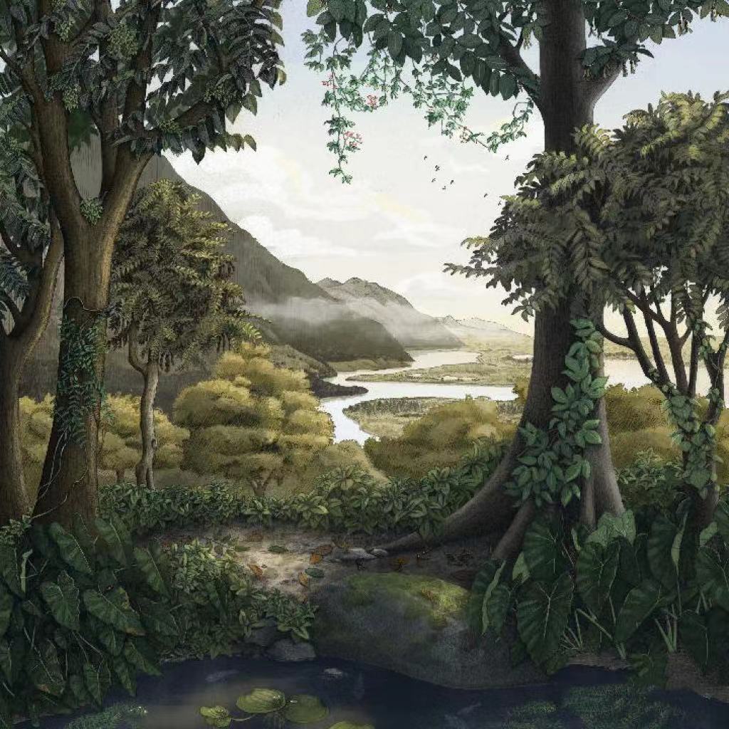 青藏高原部分地區生物群復原圖。(中國科學(xué)院西雙版納熱帶植物園供圖)