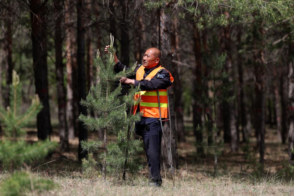 護林員馬裕在松樹(shù)林里,這里很多樹(shù)是馬裕剛參加工作時(shí)種下的,如今已枝繁葉茂(5月17日攝)。新華社記者 詹彥 攝