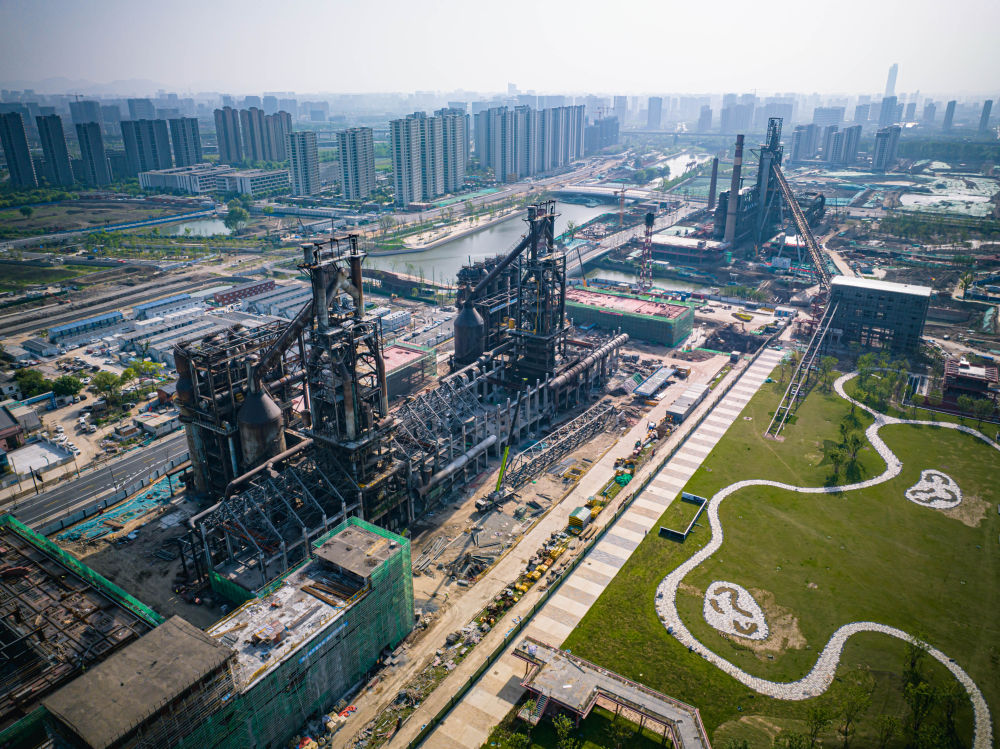 建設中的杭鋼工業(yè)舊址公園(2023年4月17日攝,無(wú)人機照片)。新華社記者 江漢 攝