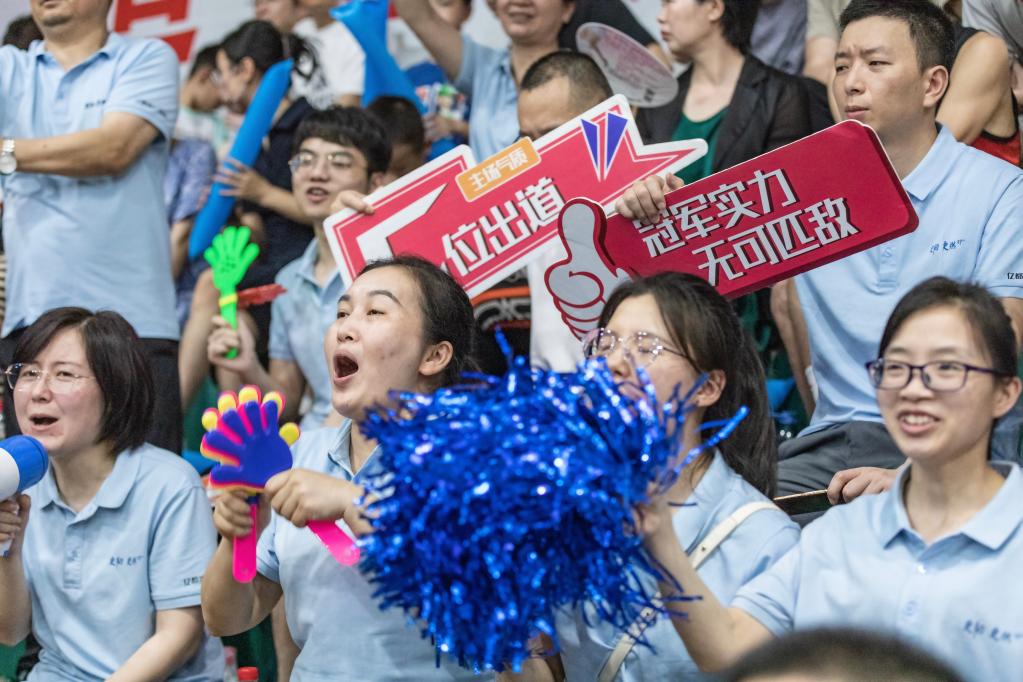 5月27日晚,億都控股員工在場(chǎng)下為球員加油打氣。