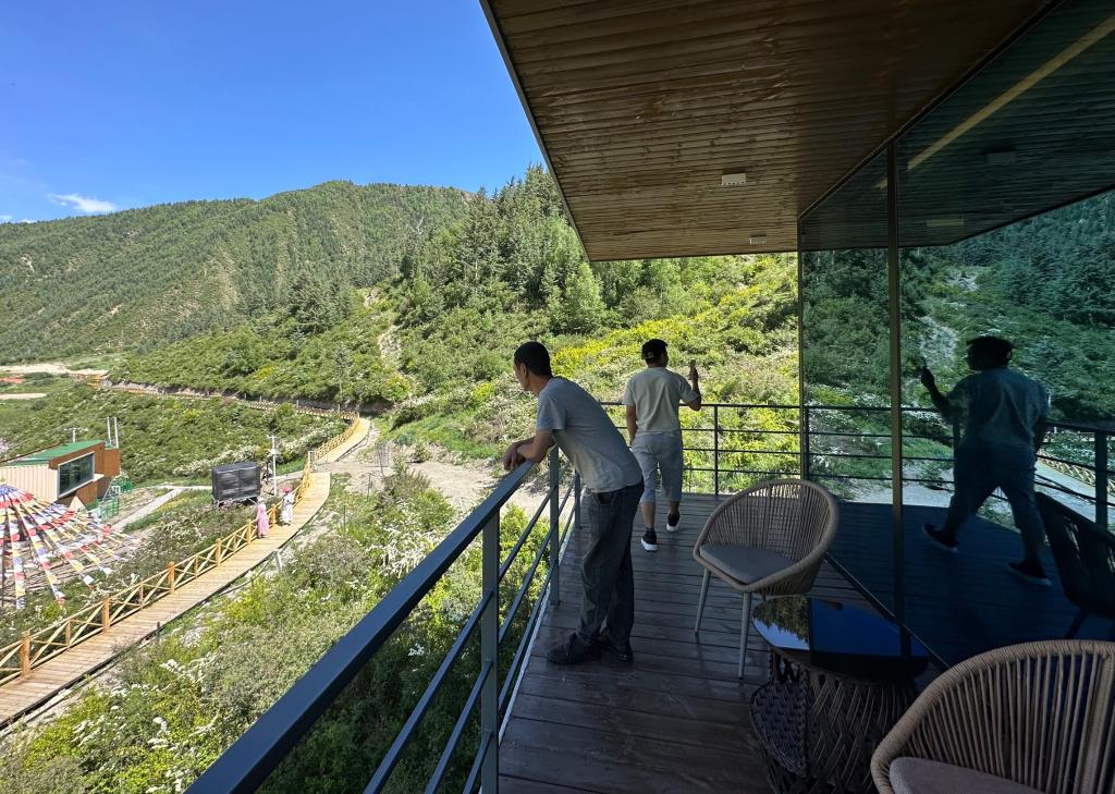 午后,在扎毛村“芊桑別院”景區,來(lái)自湖北、甘肅等地的游客站在高處遠眺高原美景,贊不絕口。