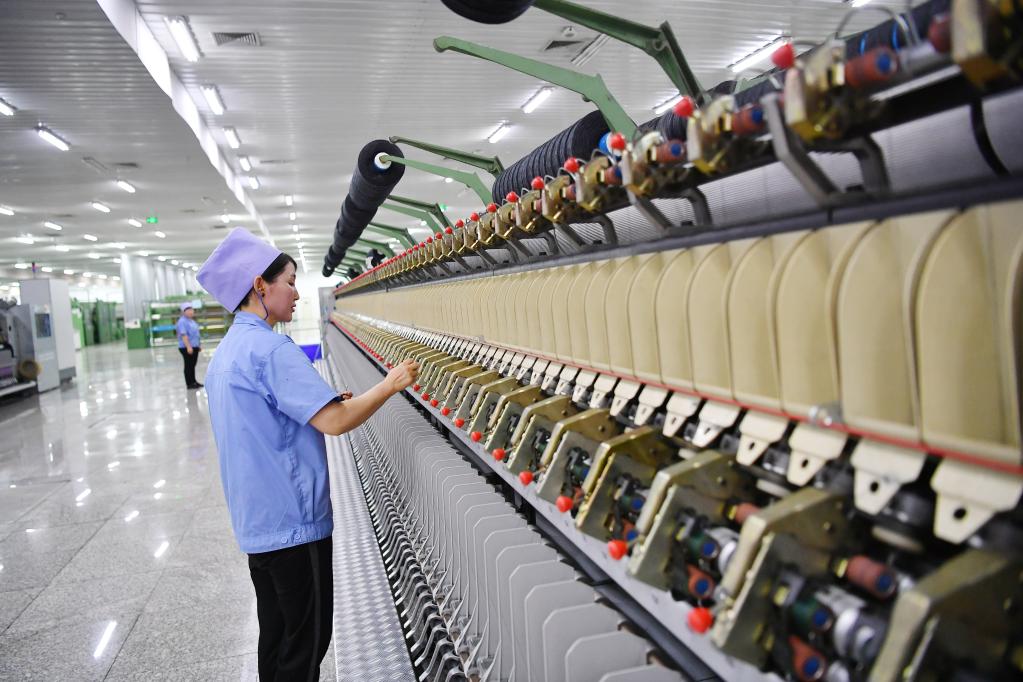 工作人員在新澳羊絨有限公司紡紗車(chē)間作業(yè)。 新華社記者 王鵬 攝