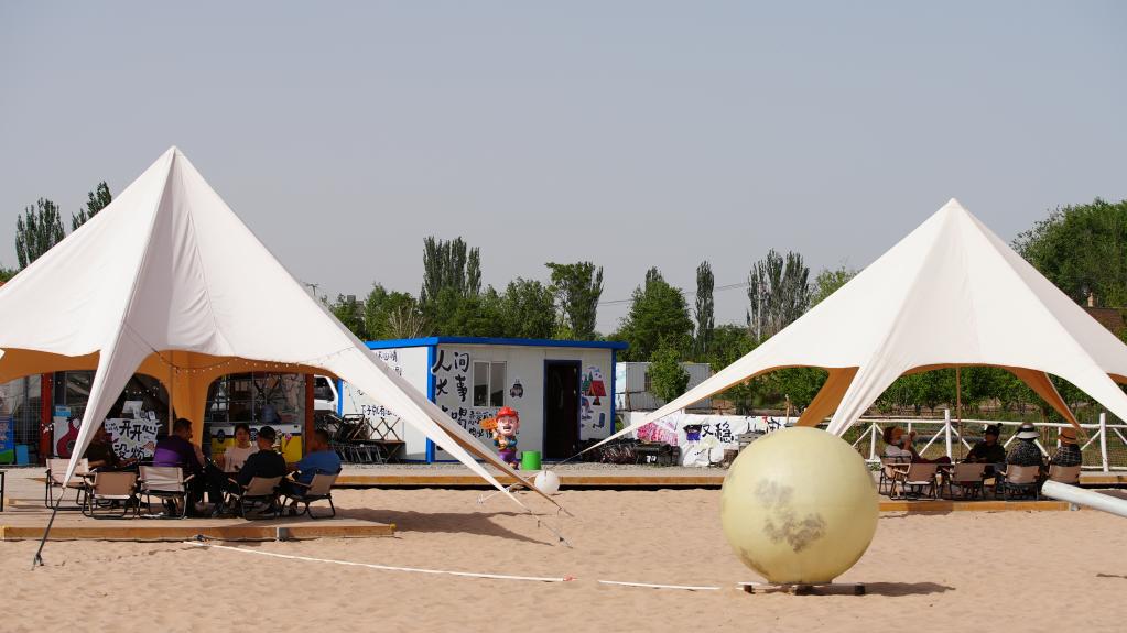 游客在胡家堡村“沙灘露營(yíng)地”游玩。(靈武市融媒體中心供圖)