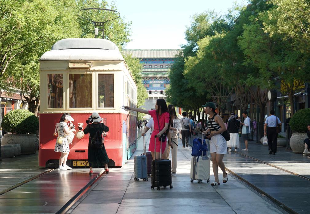 7月9日,人們在前門(mén)大街參觀(guān)游覽。新華社記者 任超 攝