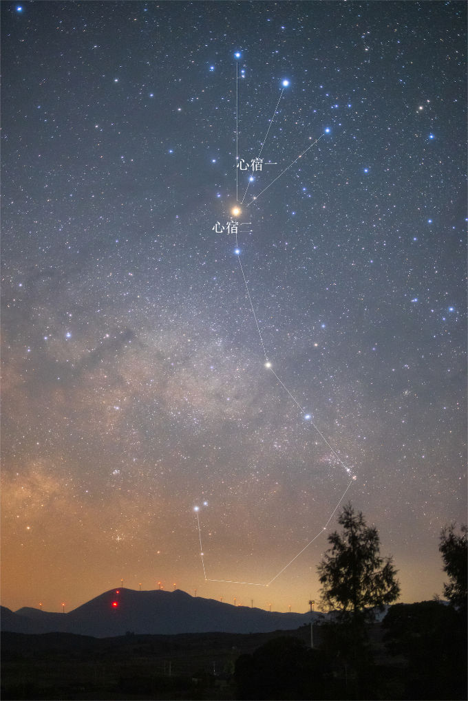 中國天文學(xué)會(huì )會(huì )員、天津市天文學(xué)會(huì )理事賴(lài)迪輝介紹,天蝎座是一個(gè)著(zhù)名的黃道星座,是夏季南部天空的標志性星座,形象鮮明又醒目。心宿一是天蝎座σ星,屬東方蒼龍七宿的心宿。心宿一是一顆藍巨星,位于比它更亮的紅色超巨星心宿二(天蝎座α星)附近,亮度為2.9等,較適合肉眼觀(guān)測。