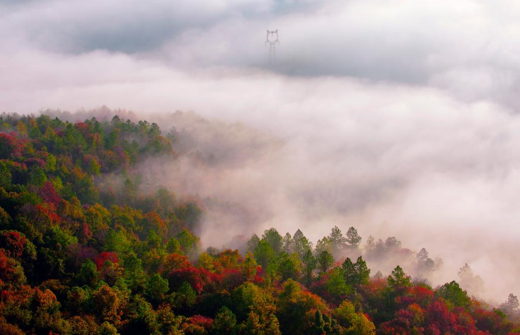 圖為宜昌市遠安縣的云海紅葉景觀(guān)。(文振效 攝)