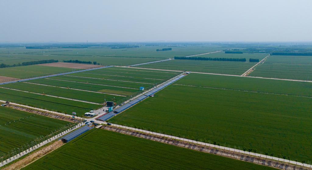 齊河縣20萬(wàn)畝糧食綠色優(yōu)質(zhì)高產(chǎn)高效(噸半糧)核心區一角。無(wú)人機照片。齊河縣委宣傳部供圖