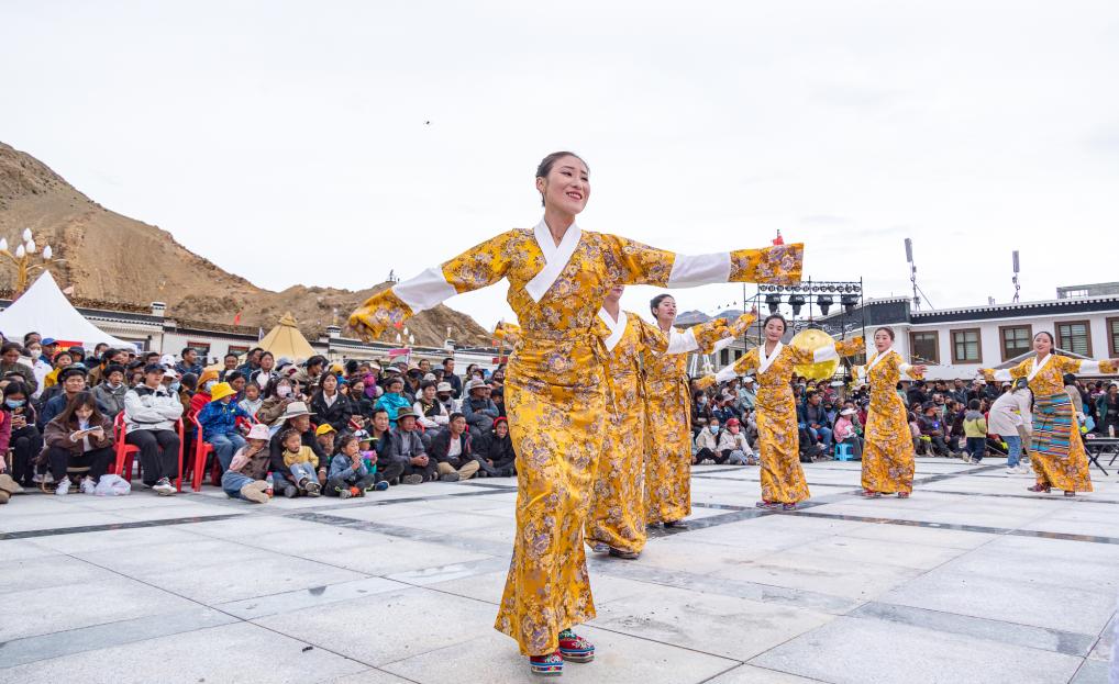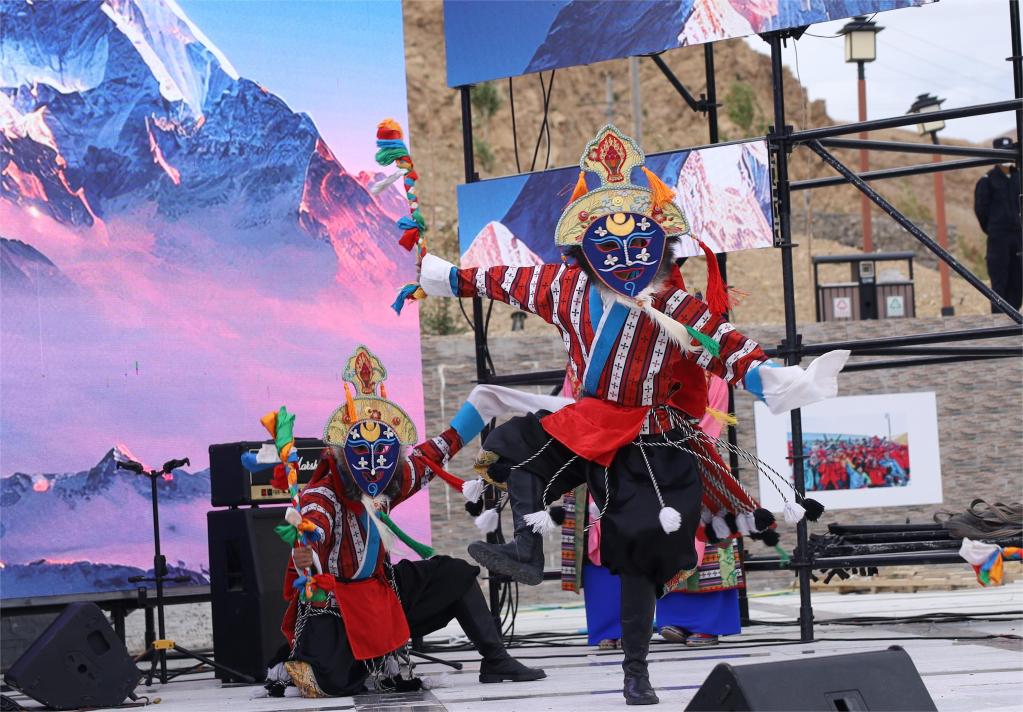 演員在表演定日洛諧舞蹈。新華社記者 丁增尼達 攝