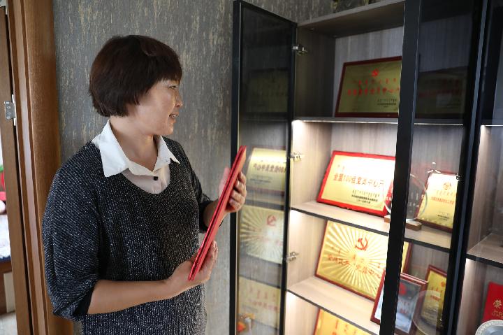 客廳一角的玻璃柜前,人們停下腳步。只見(jiàn)柜中整齊地擺滿(mǎn)金色獎狀、紅色證書(shū)和各類(lèi)獎杯,上面寫(xiě)著(zhù)致富帶頭人、“美麗庭院”示范戶(hù)、優(yōu)秀黨員中心戶(hù)和巾幗文明志愿者等。