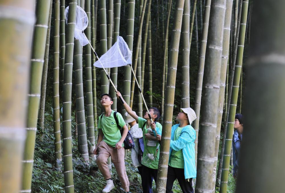 2022年7月23日,首屆武夷山國家公園自然教育活動(dòng)中,中小學(xué)生在武夷山國家公園大竹嵐捕捉昆蟲(chóng)。新華社記者 姜克紅 攝