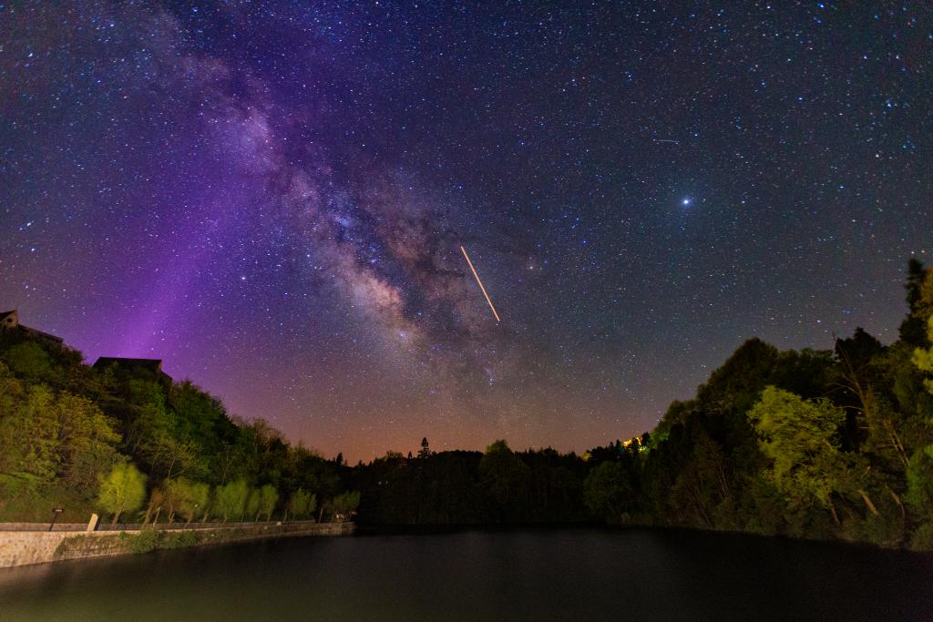 攝影愛(ài)好者在雞公山上的月湖拍攝的星空。(受訪(fǎng)單位供圖)