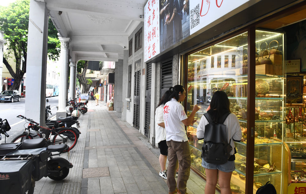 市民在廣州市恩寧路騎樓街逛街、購物(2023年6月14日攝)。新華社記者 盧漢欣 攝
