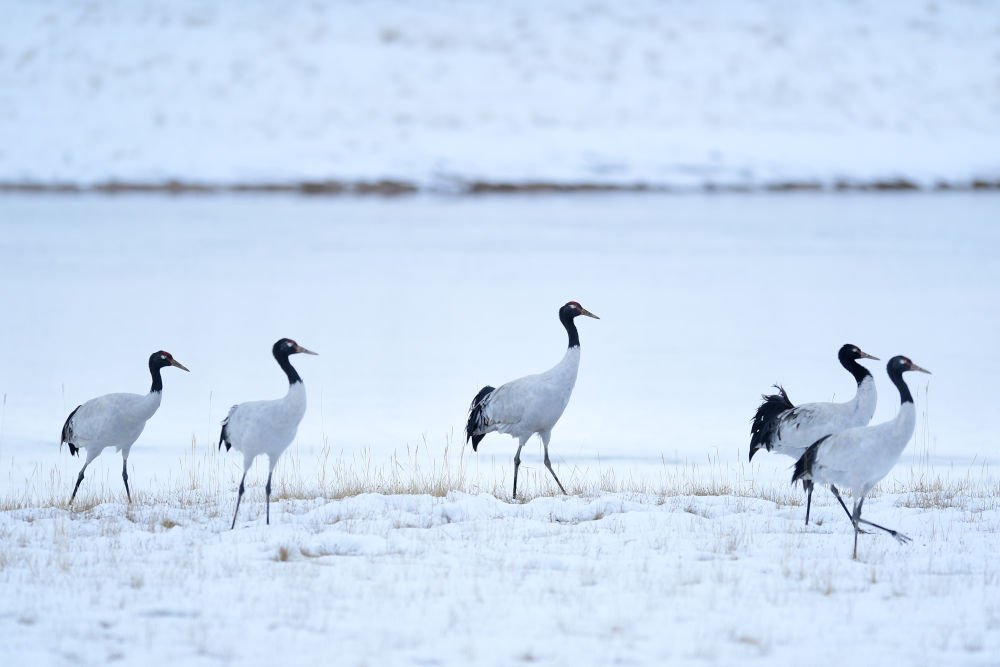 2021年10月21日在三江源國家公園黃河源園區內拍攝的黑頸鶴。新華社記者 張龍 攝