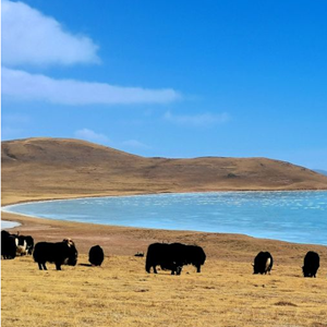 從空中俯瞰,地處青海省果洛藏族自治州瑪多縣的扎陵湖一碧萬(wàn)頃,景色秀美。這里,是牧民更登堅措從小生活的地方。