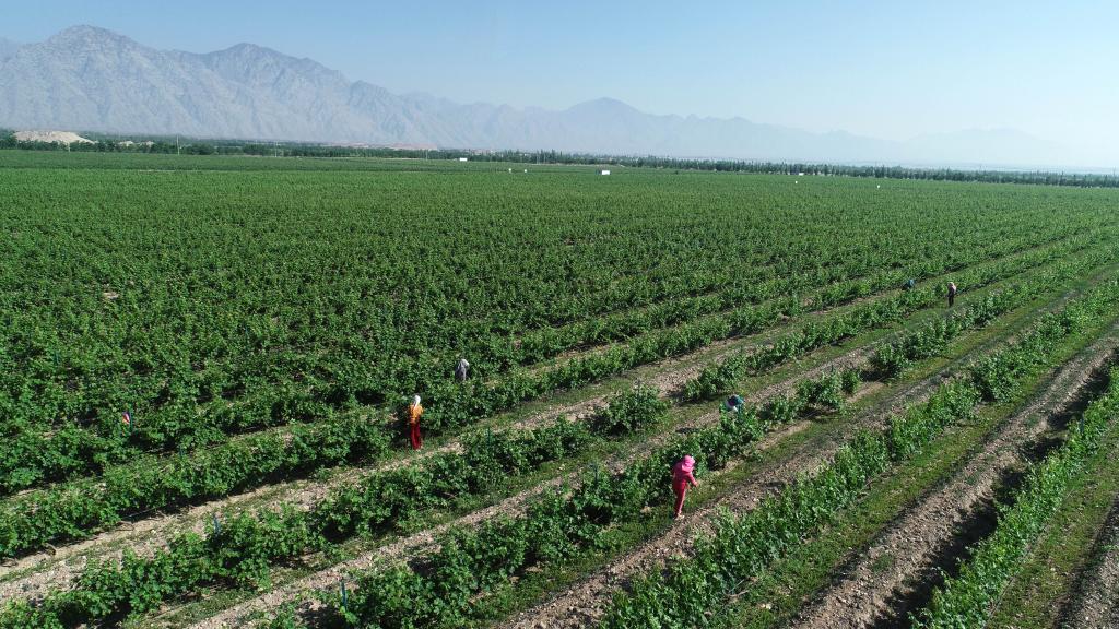 近期,寧夏的釀酒葡萄進(jìn)入收獲季,葡萄園里農民忙碌的身影比平日里更多。56歲的銀川市西夏區鎮北堡鎮華西村村民牛振明,一大早便來(lái)到村子附近的葡萄園里采摘葡萄?!按遄又苓吰咸褕@很多,不用發(fā)愁沒(méi)活干。我已經(jīng)在葡萄園里打工10年了,現在已經(jīng)成了這里的長(cháng)期工?!迸U衩髡f(shuō)。