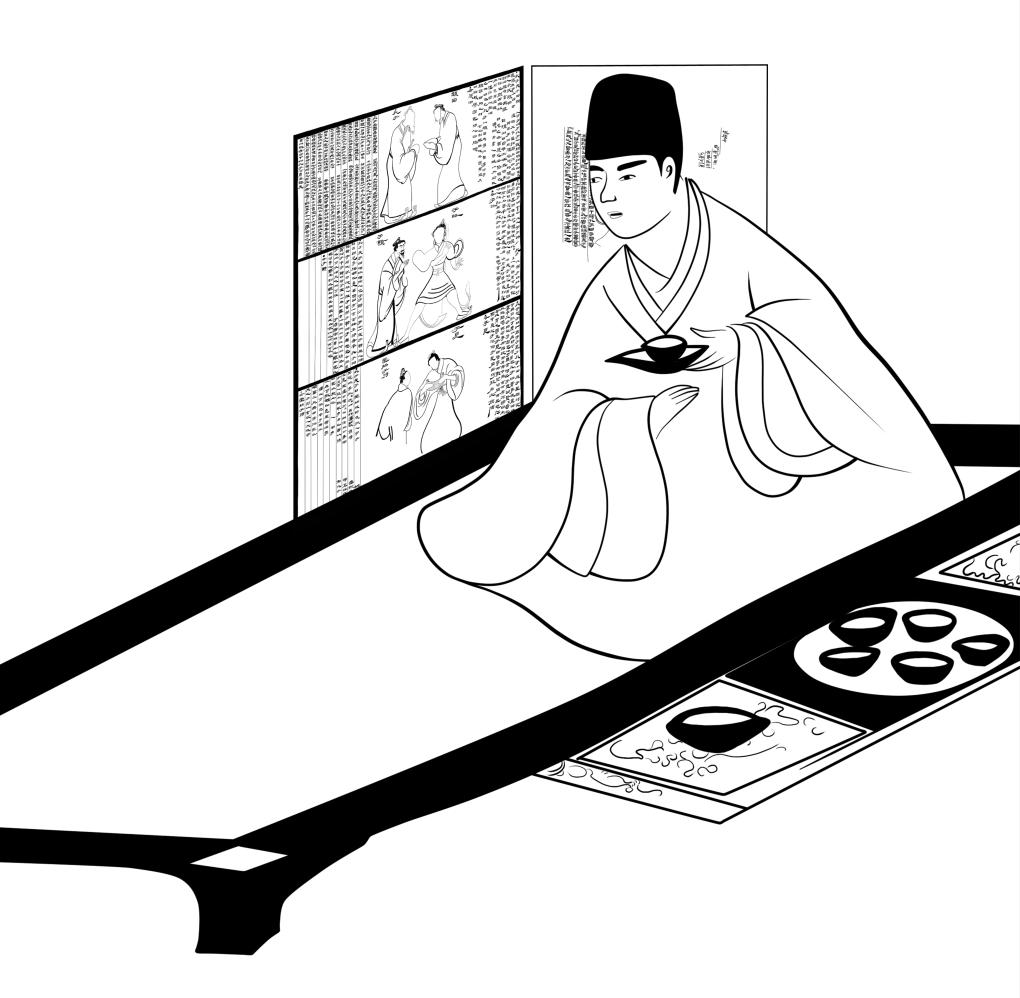 孔子徒人圖漆衣鏡使用方式復原圖。 王楚寧提供