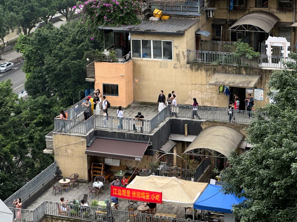 在重慶新晉“網(wǎng)紅”景點(diǎn)白象居,只見(jiàn)許多游客前來(lái)打卡。來(lái)自西安的大四學(xué)生杜易航站在白象居觀(guān)景天臺上,不斷變換角度給女友拍照。杜易航在社交媒體上了解到白象居,“完全不會(huì )覺(jué)得不方便,吃喝玩樂(lè )在這個(gè)居民樓里都能實(shí)現?!倍乓缀秸f(shuō)。