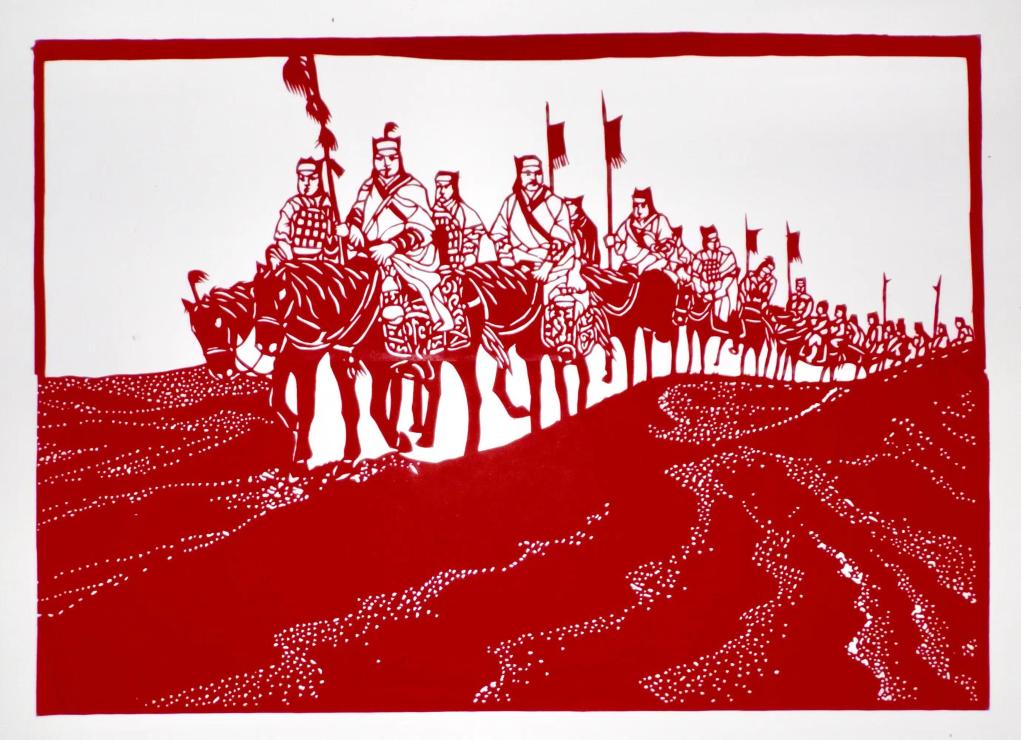 出生于1964年的鐘林強是一位傳統剪紙愛(ài)好者,他的家距離張騫誕生地僅一公里左右。從小聽(tīng)張騫故事長(cháng)大的鐘林強花了2年時(shí)間,剪出了38幅張騫出使西域圖,以連環(huán)畫(huà)的形式展現張騫“漫從西域度流沙”的艱辛旅程。