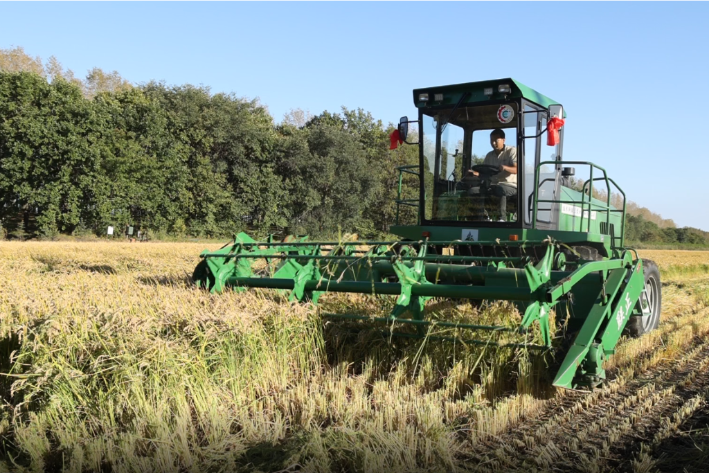 王利民說(shuō),在水稻成熟度和食味最適宜的時(shí)候斬斷稻穗,養分停止供應,可以有效減少因過(guò)度成熟掉粒造成的機收損耗和食味變化,讓稻米香氣更足,品質(zhì)更高。