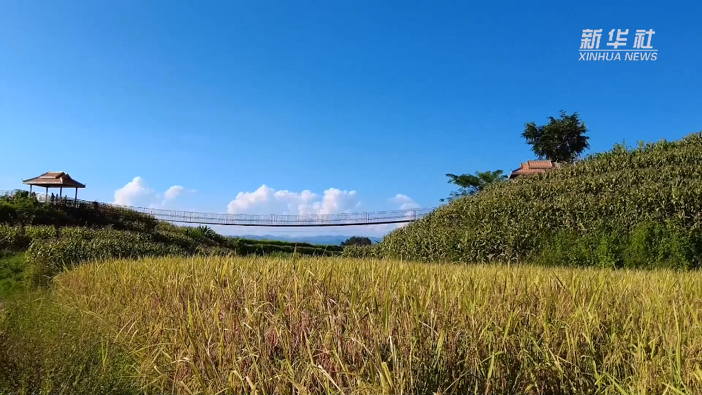 云南省德宏州芒市遮放鎮,因遮放貢米而出名。秋收末尾,遮放鎮允午村的半山腰上,農民正在太陽(yáng)下收割這種巨型稻,今年的遮放貢米迎來(lái)豐收。