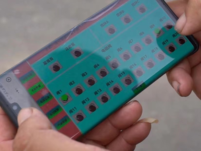 董會(huì )龍手機上控制水肥一體化系統的界面。新華社發(fā)(馬振寧攝)