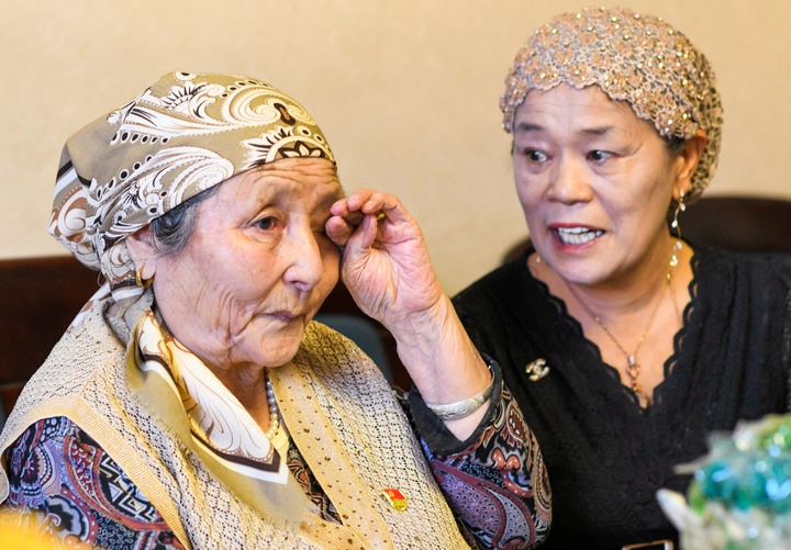在位于新疆青河縣的家中,阿尼帕(左)和養女王淑珍一起回憶往事時(shí)留下眼淚(2022年7月10日攝)。