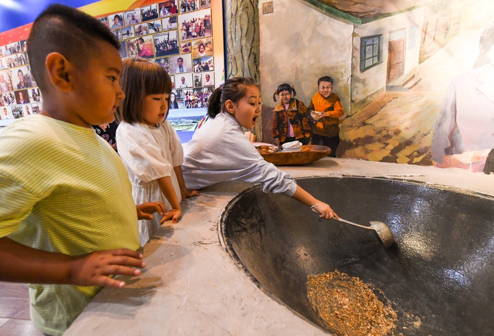 而今,土塊房變成3間大磚房,院子中間蓋起二層小樓,開(kāi)辦了阿尼帕事跡教育展館。家里一口直徑1.2米的大鐵鍋,默默講述著(zhù)阿尼帕媽媽和這個(gè)大家庭的傳奇。