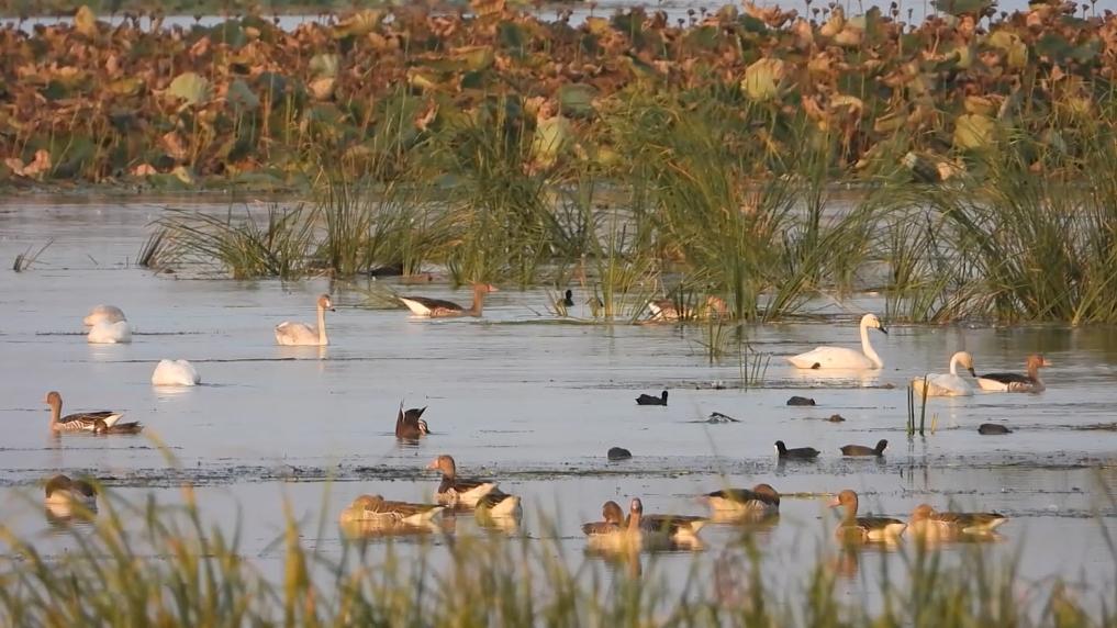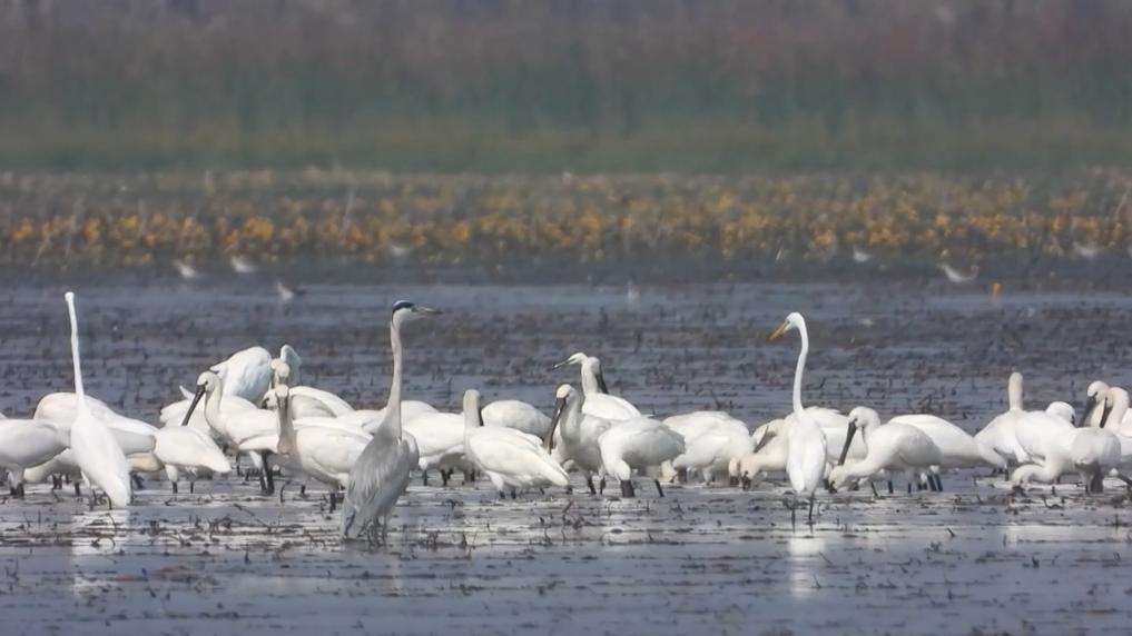 中國最大的淡水湖鄱陽(yáng)湖是白鶴、東方白鸛、小天鵝等珍稀候鳥(niǎo)鐘愛(ài)的越冬“天堂”。每年有數十萬(wàn)只候鳥(niǎo)飛抵這里,最高峰時(shí)可達到約80萬(wàn)只。