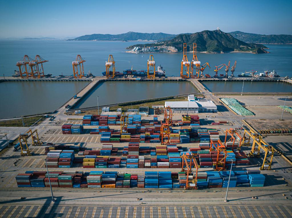 這是11月22日拍攝的溫州港狀元岙集裝箱碼頭。 新華社記者江漢攝
