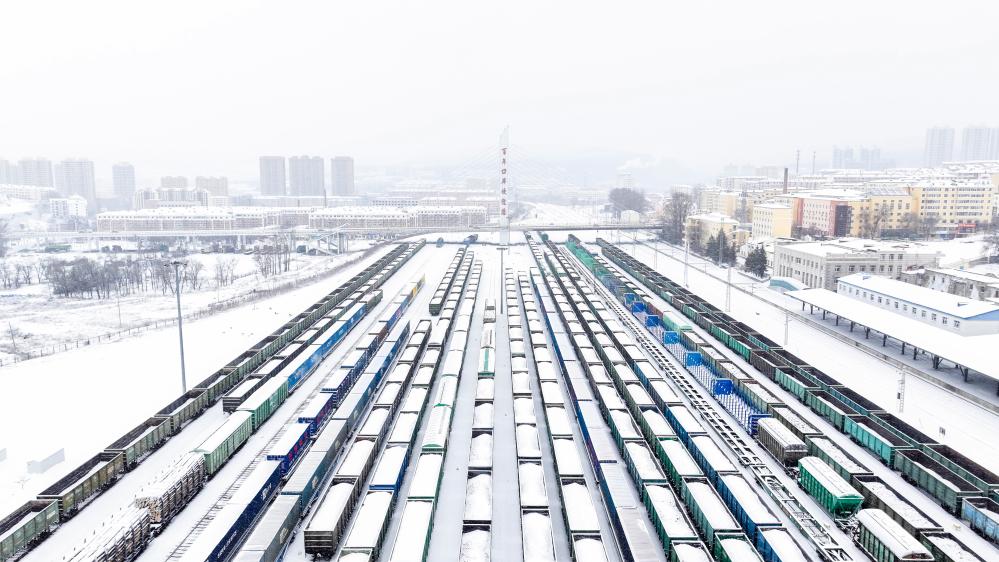 近日,“百年口岸”綏芬河銀裝素裹。雖然天寒地凍,但綏芬河鐵路口岸貨運現場(chǎng)吊機轟鳴、貨箱起落,一列列中歐班列往來(lái)穿梭,呈現一派繁忙景象。記者從中國鐵路哈爾濱局集團有限公司獲悉,今年以來(lái),中歐班列東通道綏芬河、同江鐵路口岸班列數量持續保持高位運行。