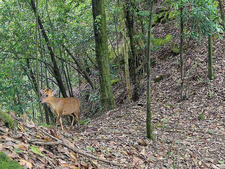 這是古藺縣赤水源黃荊老林自然保護中心布設在黃荊老林中的紅外相機拍攝的麂子(2022年5月6日攝)。顏宇供圖