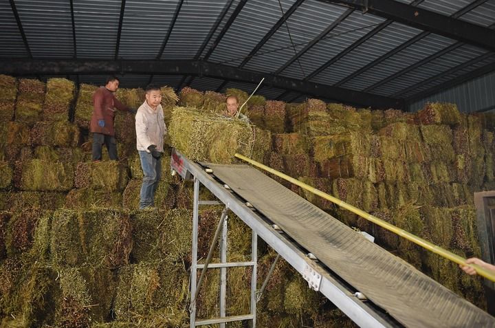 黃荊鎮香楠村趕黃草收購站內正在進(jìn)行打包作業(yè)(11月10日攝)。新華每日電訊記者 劉坤 攝