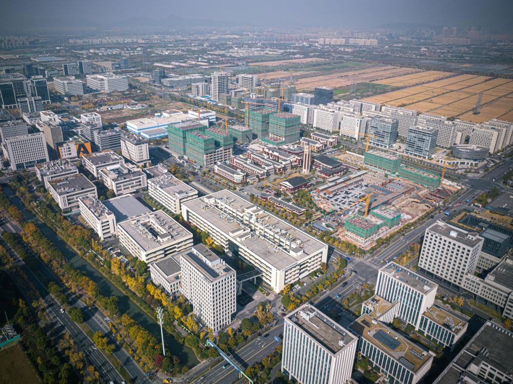 這是2023年11月28日拍攝的杭州市錢(qián)塘區杭州醫藥港(無(wú)人機照片)。新華社記者 江漢 攝