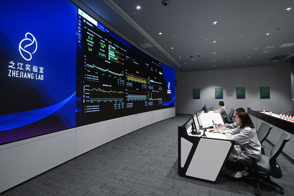 之江實(shí)驗室計算與數據中心的工程師通過(guò)“之江云”系統監測服務(wù)器集群的運行狀態(tài)(2022年6月23日攝)。新華社記者 黃宗治 攝