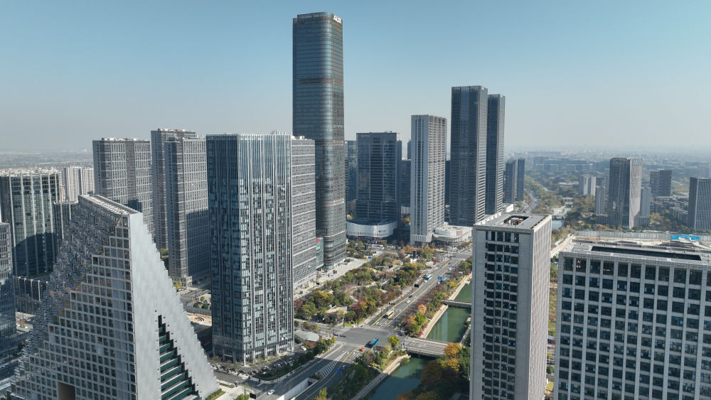 2023年11月28日拍攝的杭州城西科創(chuàng )大走廊(無(wú)人機照片)。新華社記者 翁忻旸 攝