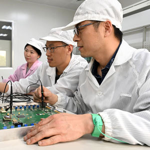 在合肥市瑤海區的中國網(wǎng)谷,一家電子科技公司的員工在智慧顯示屏生產(chǎn)線(xiàn)上作業(yè)(2023年11月16日攝)。新華社發(fā)(解琛攝)