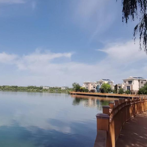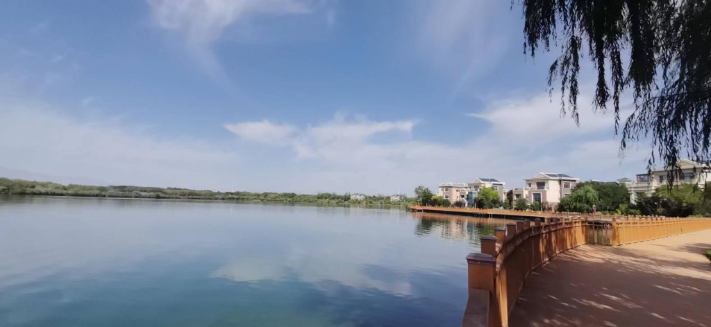 燕然、云中、居延三湖居于中心,人工湖水域面積2250畝,約相當于210個(gè)標準足球場(chǎng)大小,休閑廣場(chǎng)、健身步道、花草樹(shù)木等環(huán)繞而建,波光蕩漾,宛若江南。