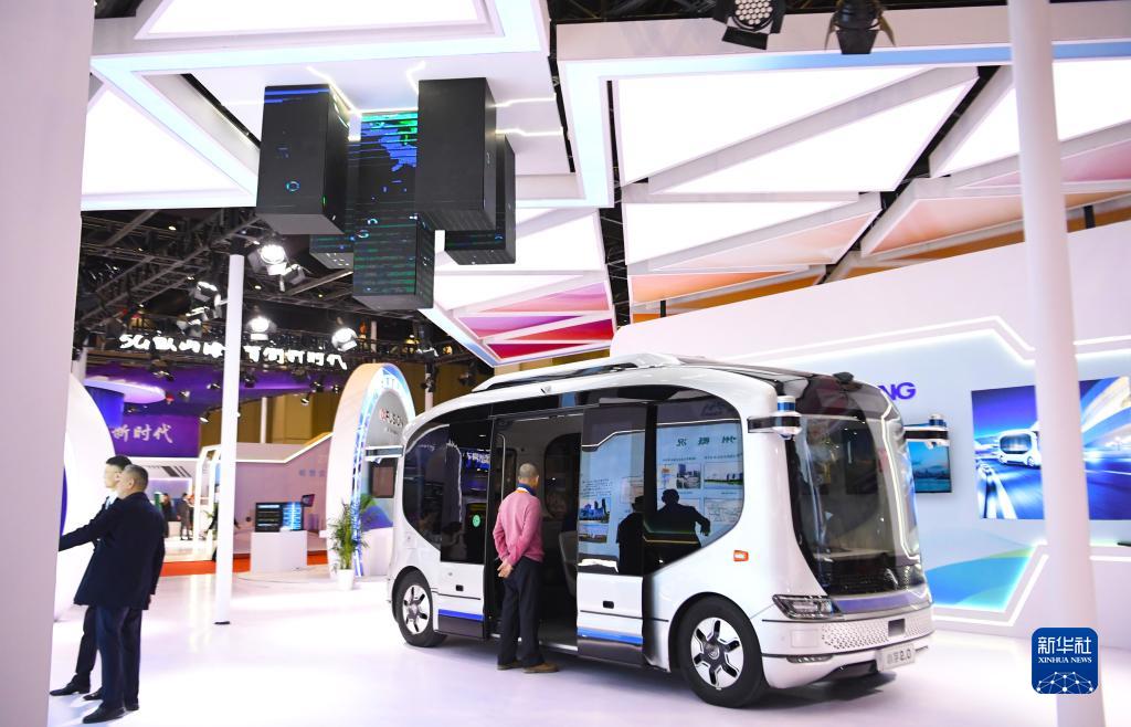 2023年12月6日,人們在2023世界5G大會(huì )展廳參觀(guān)宇通自動(dòng)駕駛巴士。新華社記者 郝源 攝