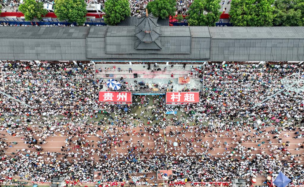7月29日,觀(guān)眾在貴州“村超”總決賽現場(chǎng)(無(wú)人機照片)