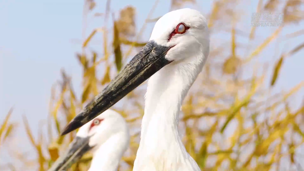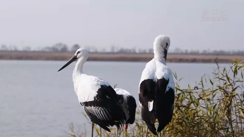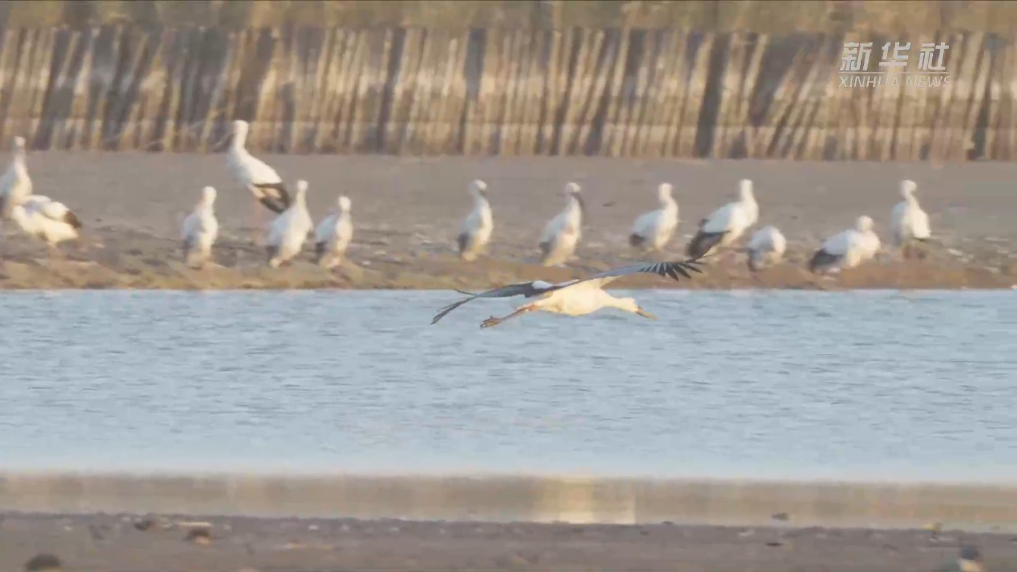 眼下,伴隨著(zhù)大量候鳥(niǎo)南遷,2022年放飛的三只東方白鸛陸續飛回,在天津市濱海新區的灘涂濕地停留補給。