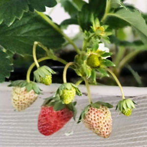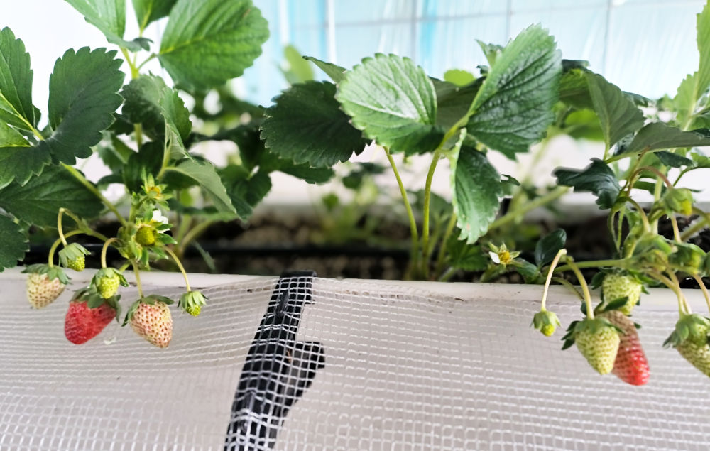 寧夏涇源縣香水鎮卡子村溫棚里的草莓已經(jīng)掛果。新華社發(fā)