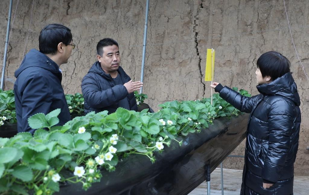 沙河市農技人員在指導農戶(hù)管理草莓。(受訪(fǎng)者供圖)