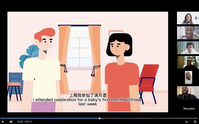 分布在世界各地的留學(xué)生同步觀(guān)看了BC中文全新打造的新視聽(tīng)項目《功夫中文·儀式感》系列動(dòng)畫(huà)片,圍繞大家最感興趣的《婚禮》和《出生》兩集內容展開(kāi)討論。外國學(xué)生們表示,從動(dòng)畫(huà)中第一次了解到,在中國紅包隨禮的金額都很有講究;孩子一歲生日進(jìn)行的抓周儀式趣味性很強,以這種方式寄托對孩子未來(lái)的美好愿望很新鮮。對比中國文化傳統,學(xué)生們也分享了自己國家結婚、生子方面的習俗。大家發(fā)現,非洲的一些習俗竟然和中國傳統習俗有很多相似之處。學(xué)生們表示,這些新媒體動(dòng)畫(huà)片短小活潑、形象生動(dòng)、內涵豐富,對他們細致深入地了解中國文化有很大幫助,通過(guò)對這些中國文化的了解,一定會(huì )對自己在工作學(xué)習中與中國朋友交流增強互信與理解。