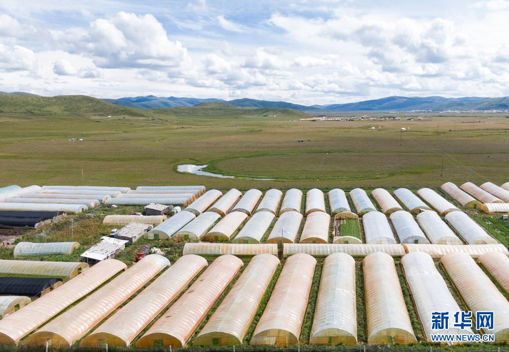 這是四川省阿壩藏族羌族自治州紅原縣邛溪鎮熱坤村的蔬菜大棚(8月13日攝,無(wú)人機照片)。