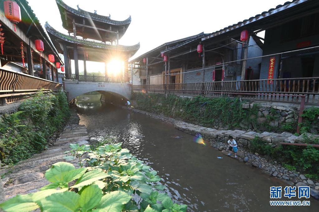 8月18日拍攝的武夷山市下梅村當溪兩旁的古碼頭、古建筑。